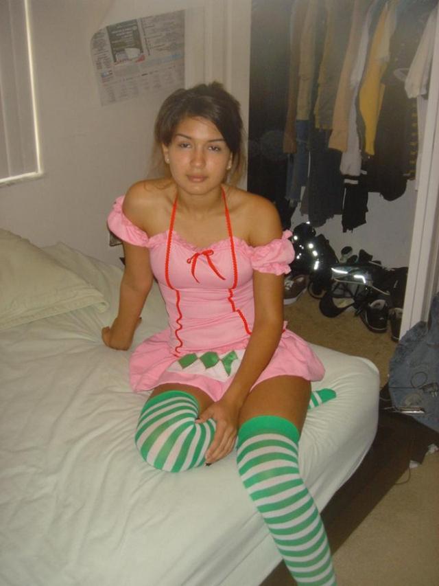 Молодая латинка с большой попой ходит без трусиков на улице и дома