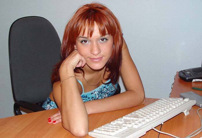 Порно фото похожее на Рыжая секретарша из 90ых разделась около старого компьютера:
