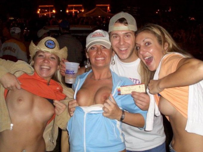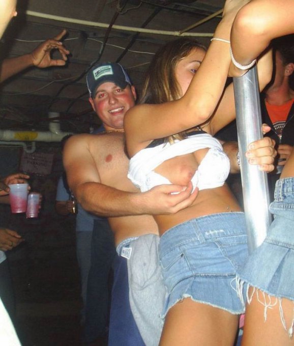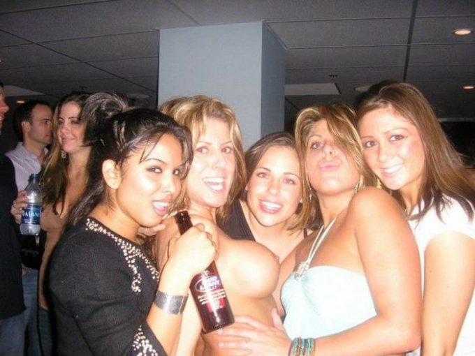Порно фото похожее на Пьяные телки показывают голые сиськи в клубе: