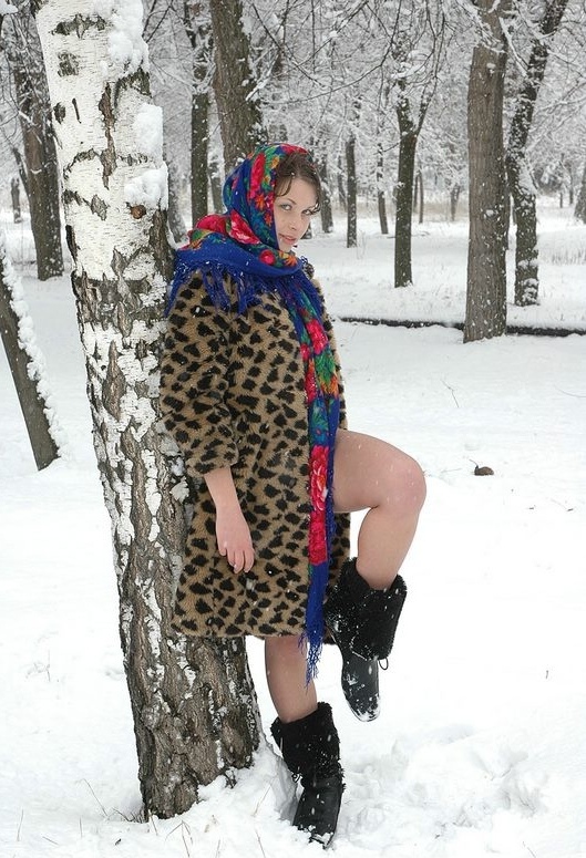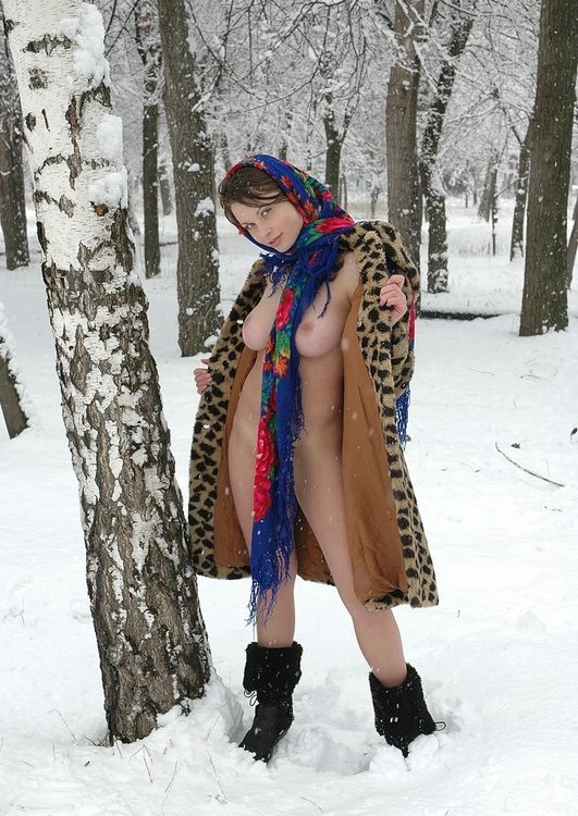 Порно фото похожее на Деревенская девушка в гуляет по полю голая на морозе зимой: