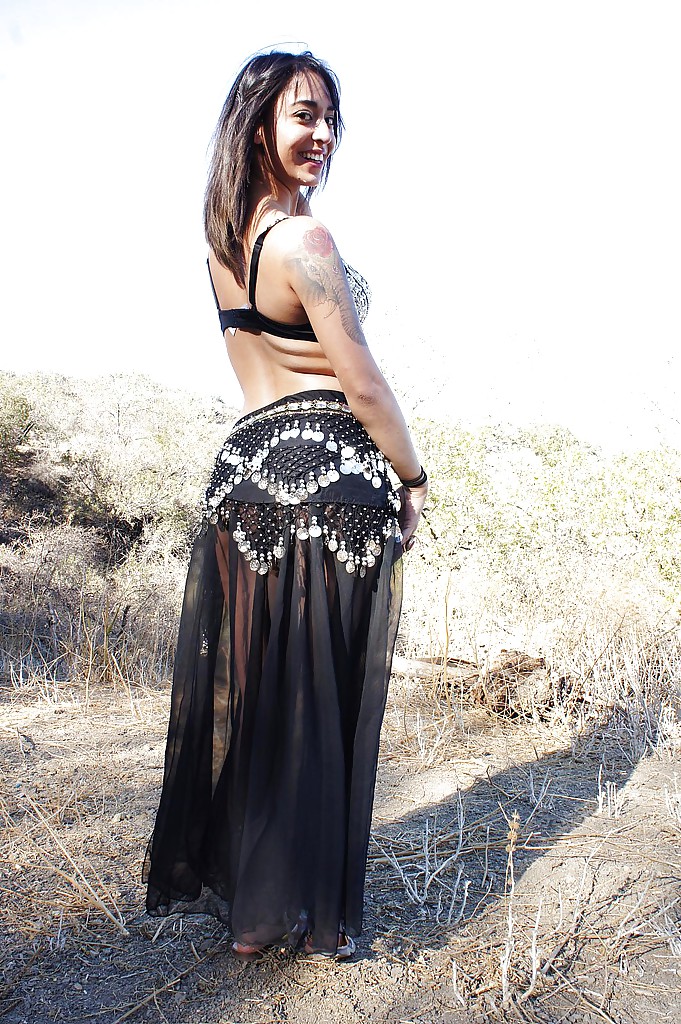 Порно фото похожее на Татуированная красотка Penelope с пирсингом в чистом поле: