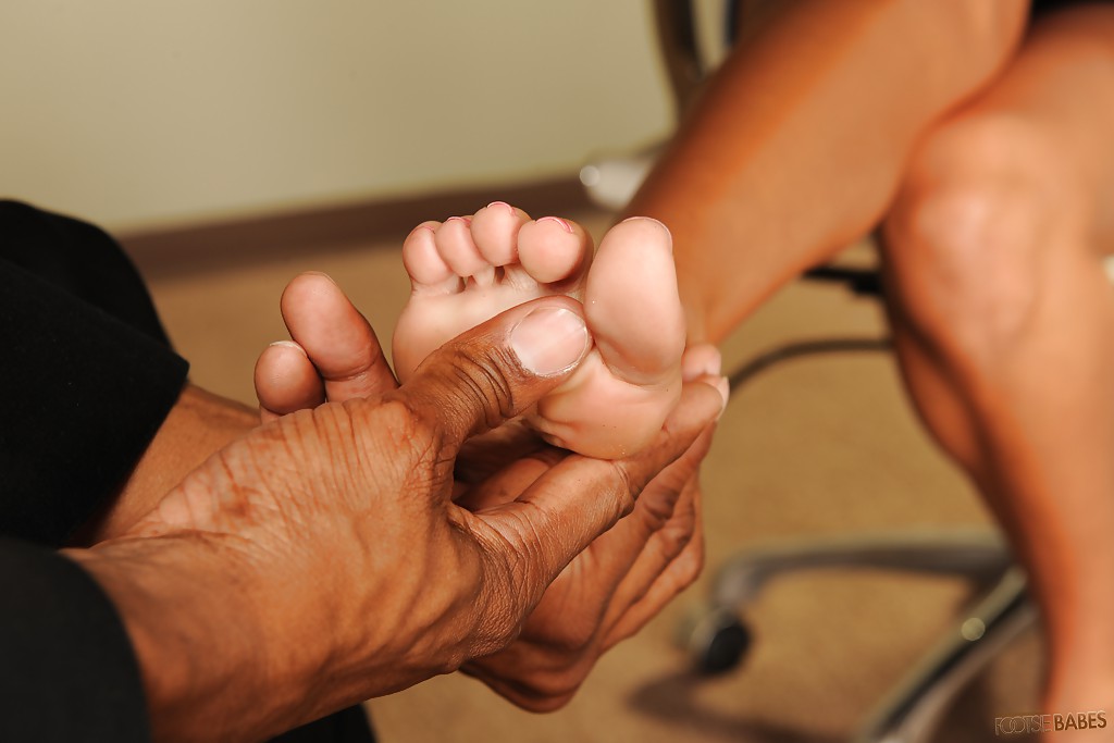 Порно фото похожее на Негр лижет ножки начальницы ради секса с ней: