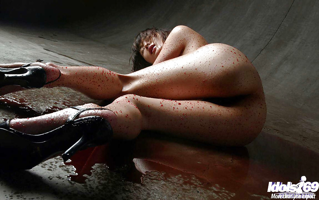 Порно фото похожее на Японскую модель Wakako Hujim поливают вином: