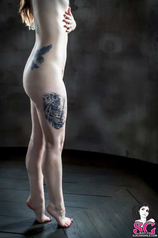 Порно фото похожее на Заключенная с татуировками раздевается в тюремной камере: