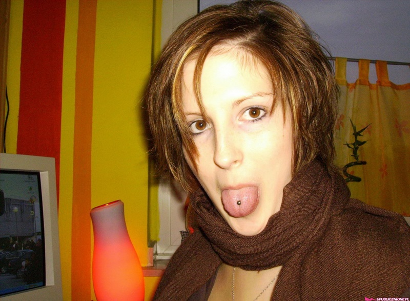 Порно фото похожее на Эро снимки молодой студентки с пирсингом в языке:
