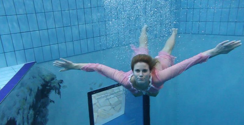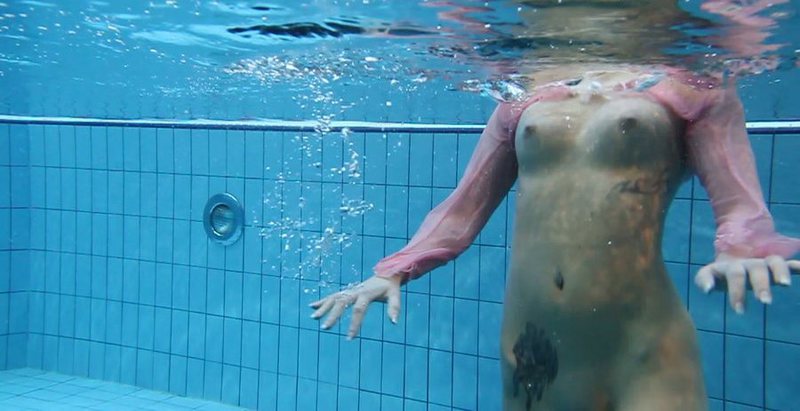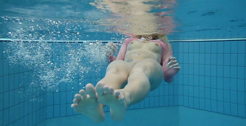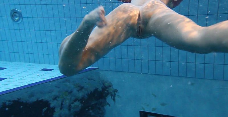 Порно фото похожее на Залезла в бассейн и сверкнула голыми изюминками: