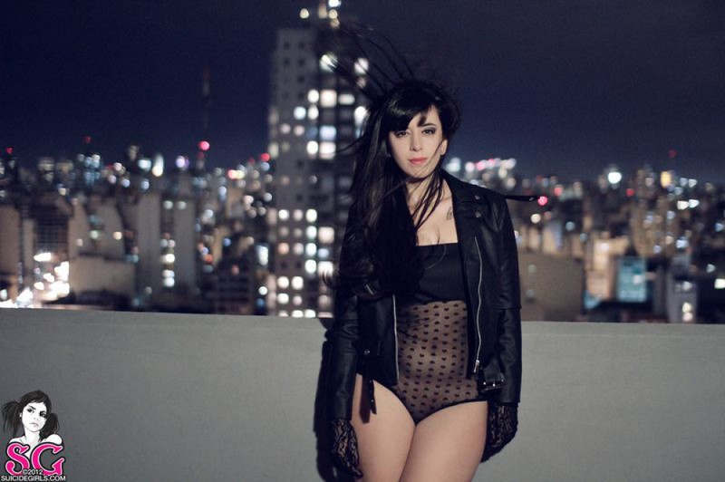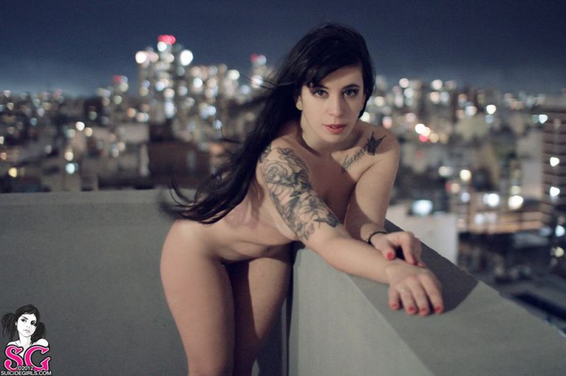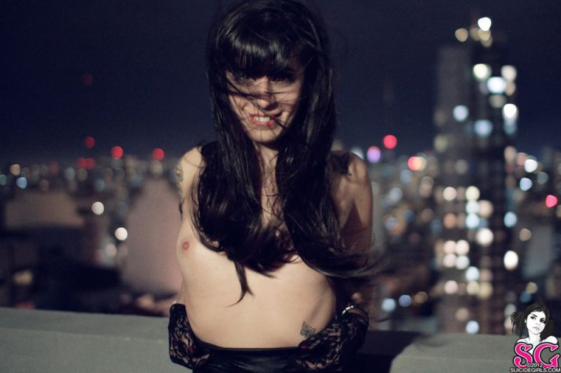 Порно фото похожее на Потрясающая ночная эротика на крыше здания:
