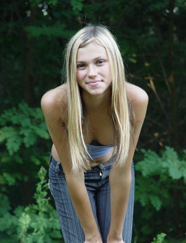 Порно фото похожее на Блондинка сняла майку и джинсы на лесной тропинке для хахаля: