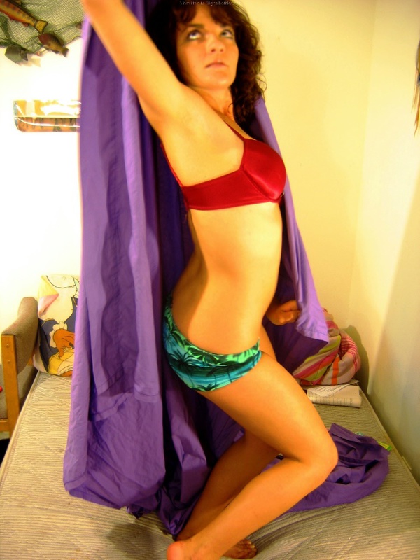 Порно фото похожее на Эротическое соло от стервозной сучки на кроватке: