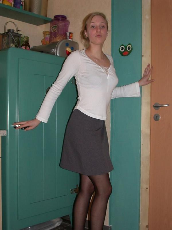 Порно фото похожее на Замужняя домохозяйка одевает стильные чулки на кухне: