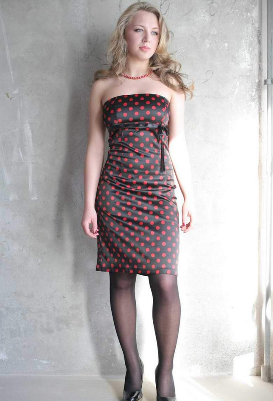 Порно фото похожее на Кудрявая телка сняла платье в горошек на площадке и показала сиськи: