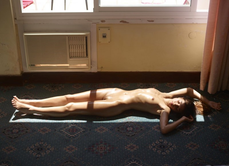 Порно фото похожее на Загорелая худышка валяется дома на полу в летнюю жару: