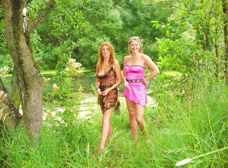 Порно фото похожее на Две мамаши голышом гуляют в летнем лесу: