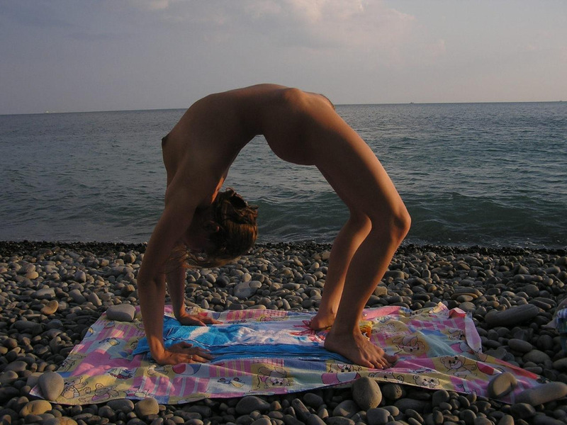 Порно фото похожее на Милашка занимается йогой на пустом пляже: