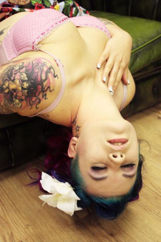 Порно фото похожее на Эротика от татуированной крашенной мамаши в гостиной: