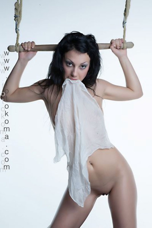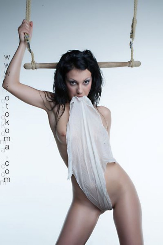 Порно фото похожее на Сексуальная брюнетка едва прикрывает наготу прозрачным платком: