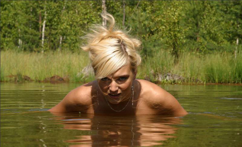Порно фото похожее на Стройная блондинка купается в деревенской реке голая: