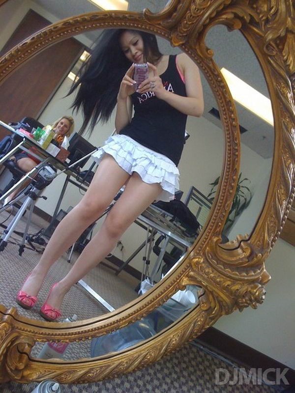 Порно фото похожее на Селфи в зеркале сексуальных девушек: