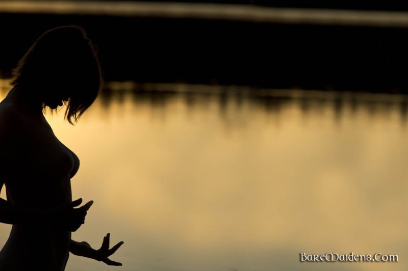 Порно фото похожее на Красивые снимки голой девушки на закате солнца у реки:
