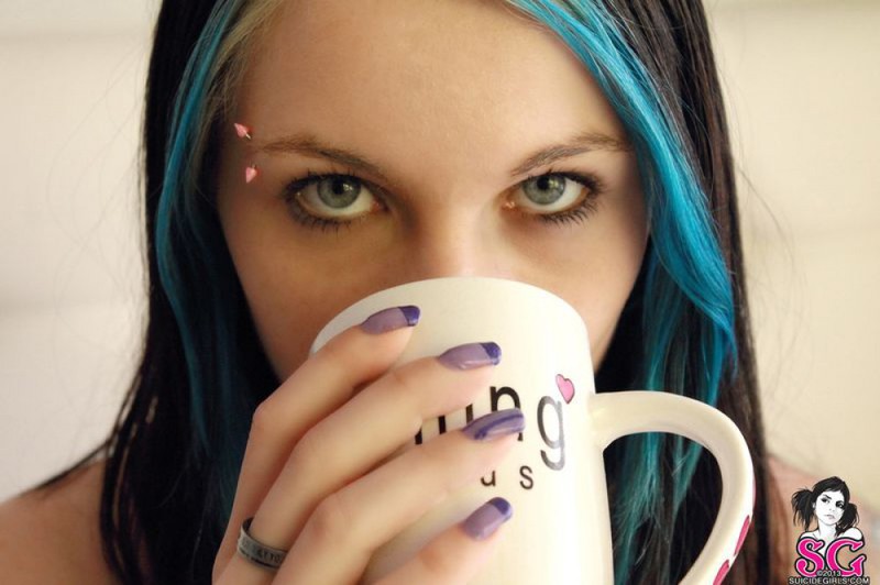 Порно фото похожее на Молоденькая эмо-девушка любит откровенно позировать: