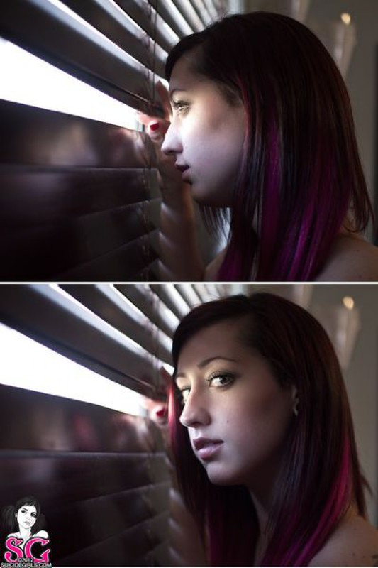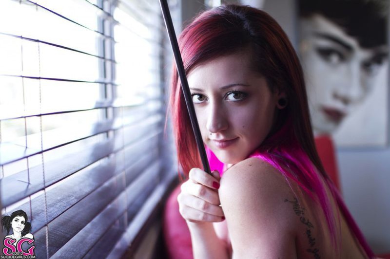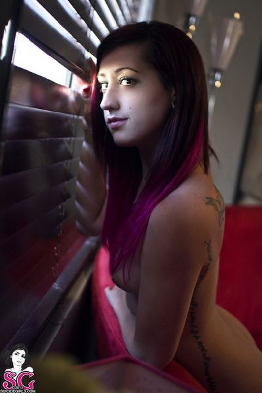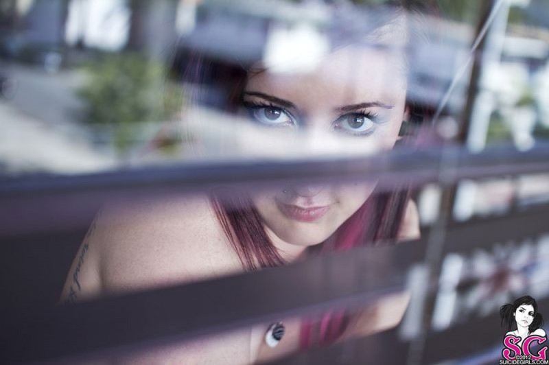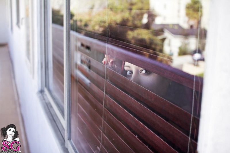 Порно фото похожее на Молодая неформалка разделась и подглядывает через жалюзи: